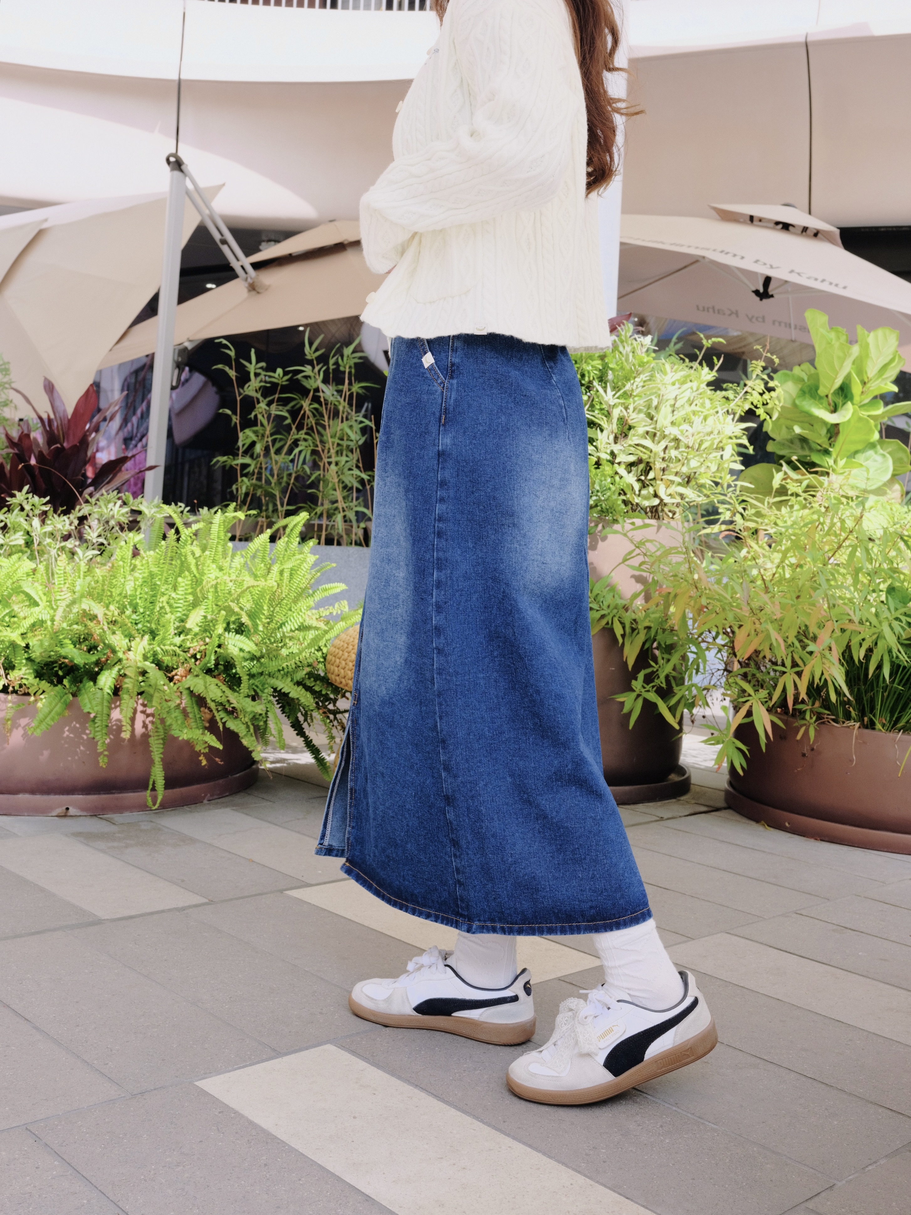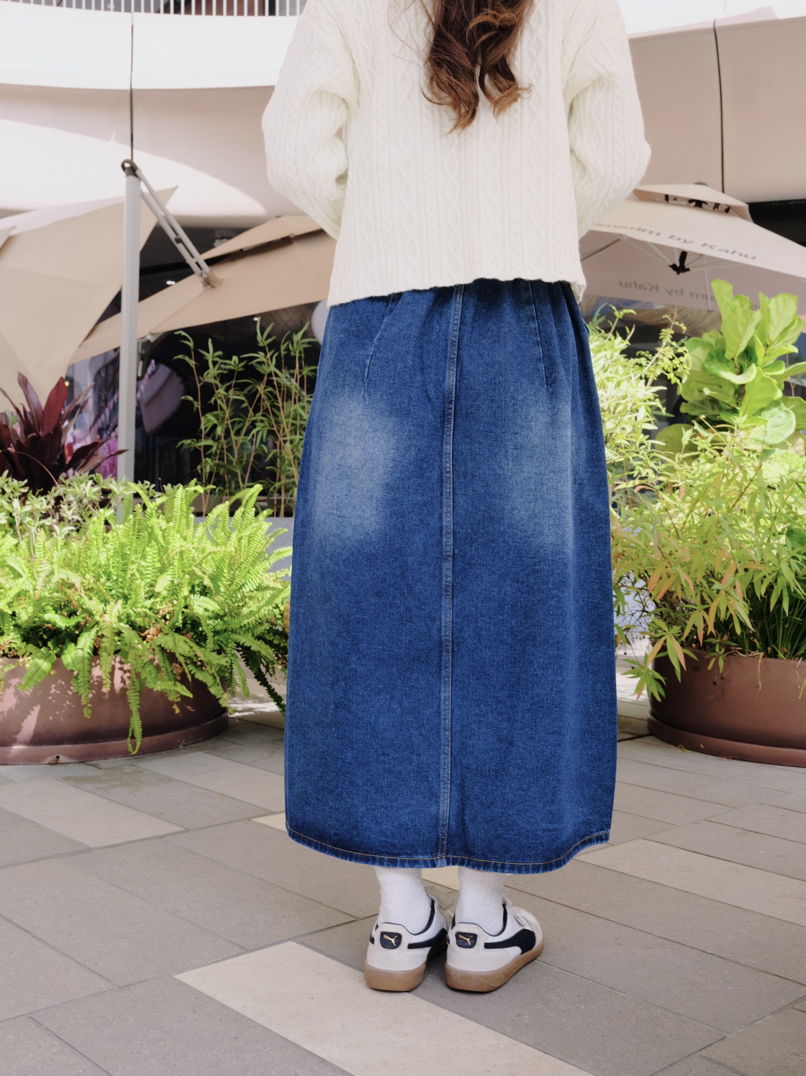 👨🏻🚀:中調藍洗水工藝🖌️加入金屬釘鈕腰耳增添復古感細節